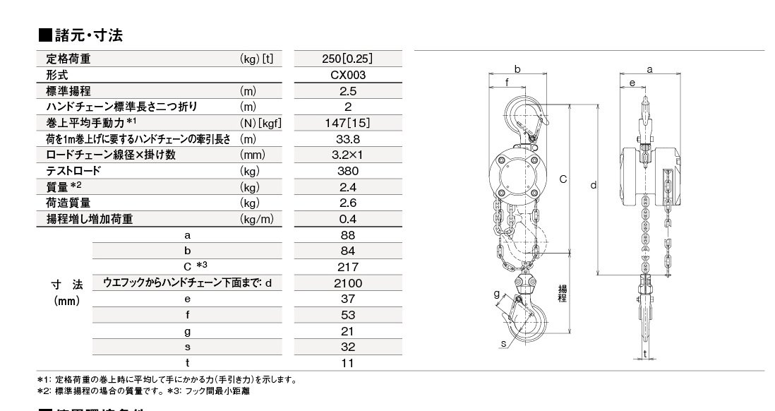 ● Equipped with a powerful load chain (1000 N / mm [[squared]])).