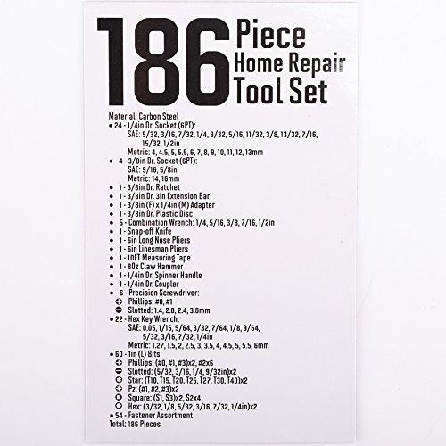 CO-Z 186 Pieces Home Repair Tool Set with Case, Premium Carbon Steel Starter Tool Kits Household