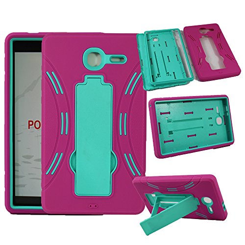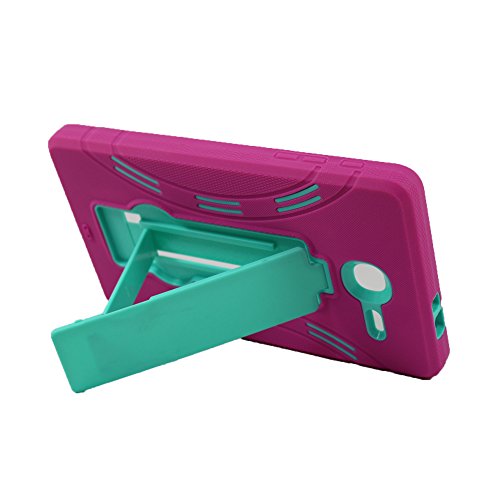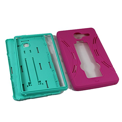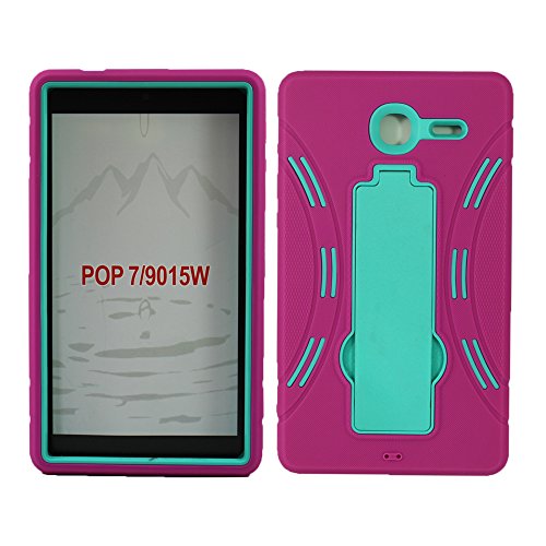 Alcatel One Touch Pop 7 LTE Case, SOGA [Ribbed Protection Series] Armor Kickstand Case Hybrid Hard Heavy Duty Skin Phone Cover for Alcatel One Touch Pop 7 LTE (9015W) - Teal / Hot Pink