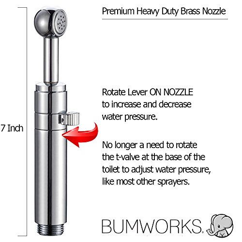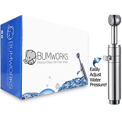 Bumworks Premium Cloth Diaper Toilet Sprayer Kit with ADJUSTABLE Spray Nozzle - Brass Chrome Hand Held Bidet w/ Metal Hose, T-Valve (7/8 inch), and...