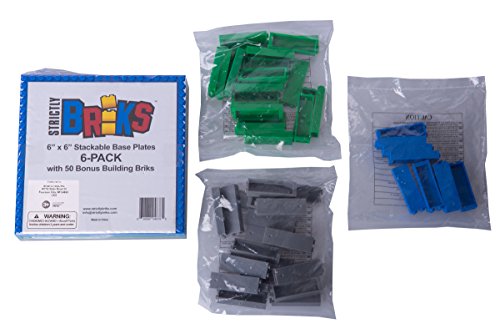 - Title : Premium Blue, Green, and Gray Stackable Base Plates - 6 Pack 6" x 6" Baseplate Bundle with 50 Multicolored Bonus Building Bricks (LEGO® Compatible) - Tower Construction