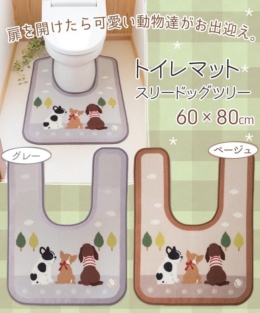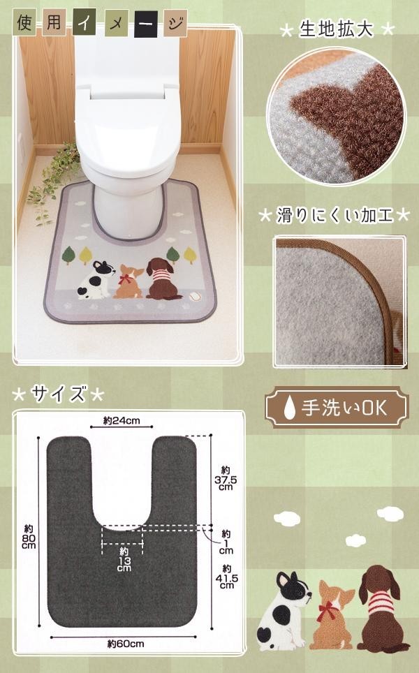 fk094igrjs落ち着いた色合いと可愛らしいデザインのトイレマット♪裏面に滑りにくい加工を施しているので、横ズレしにくいです。 製造国:中国 素材・材質:ナイロン100%(裏面滑りにくい加工) 商品サイズ:60×80cm 仕様:洗濯機・乾燥機使用不可(手洗い可)※お届け地域により、別途運賃がかかる場合やお届けできない場合がございますので、お問い合わせ下さい。