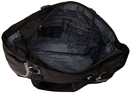Large, zippered main compartment. Cushion Zone padded computer sleeve holds most 15" notebook computers. Removable zippered pouch keeps small items together.