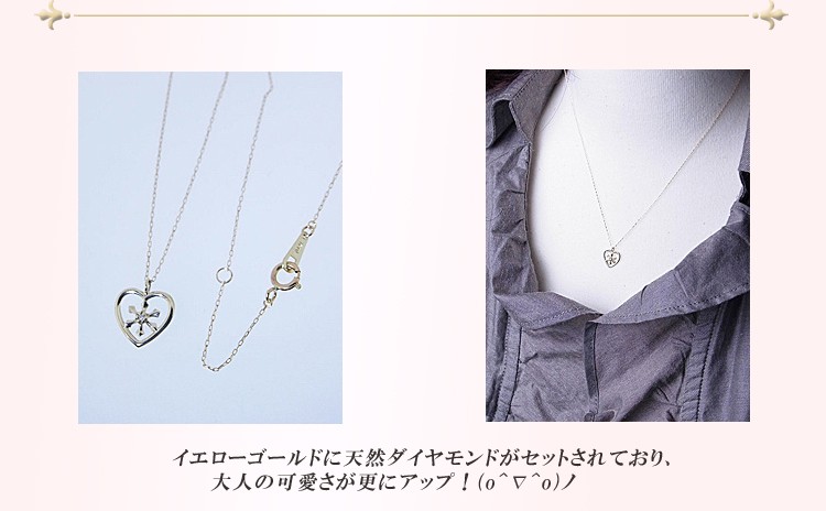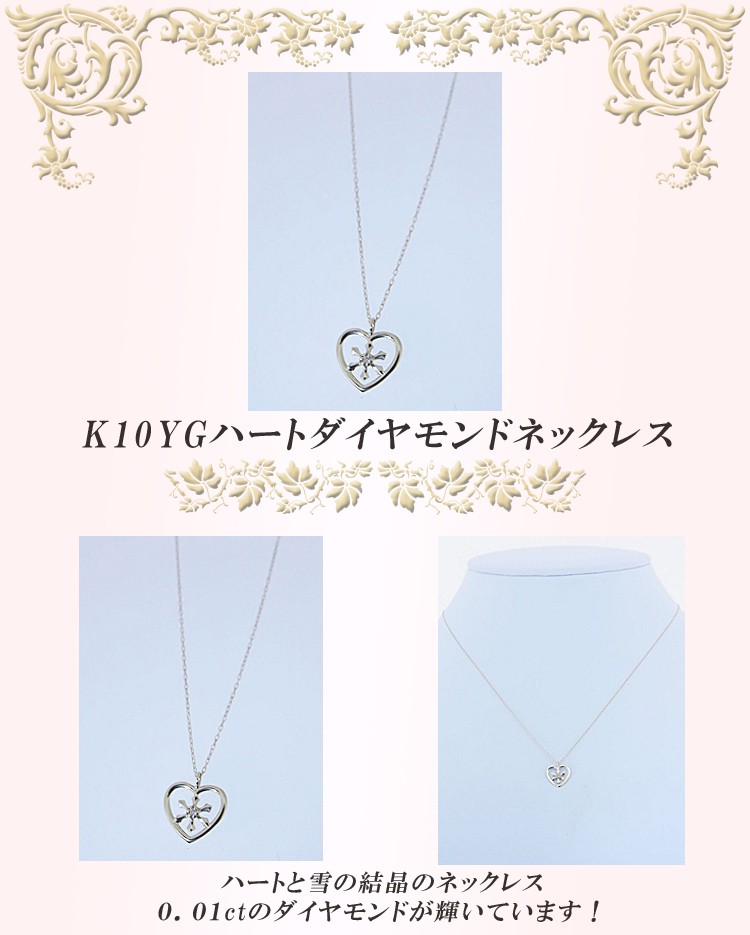 商品説明 ハートに雪の結晶を合わせたイエローゴールドのダイヤモンドネックレスです。