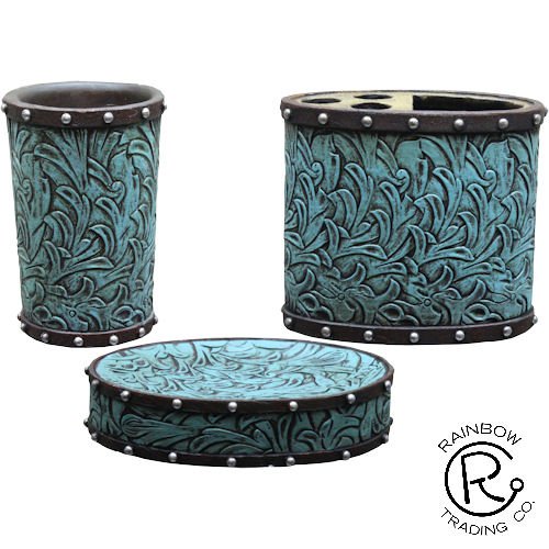 -. Title : TURQUOISE FLOWERS BATHROOM 3 PCS SET