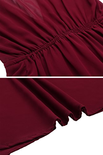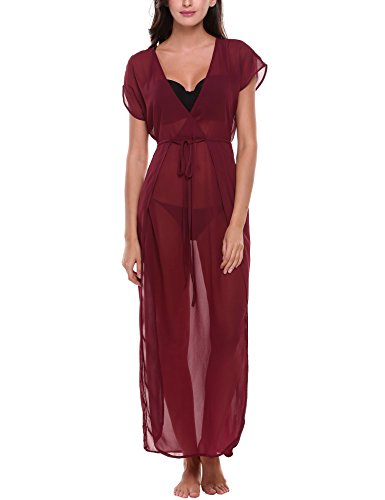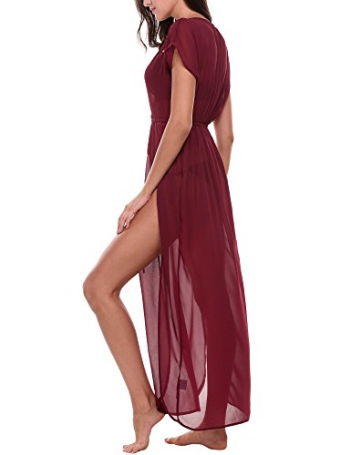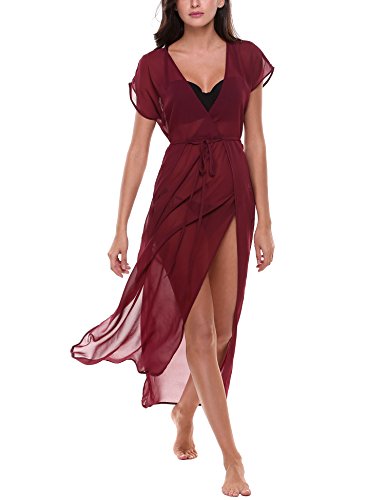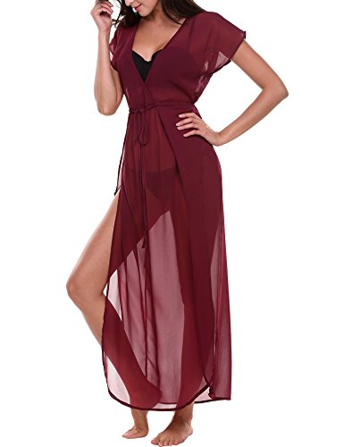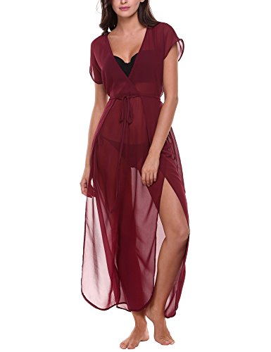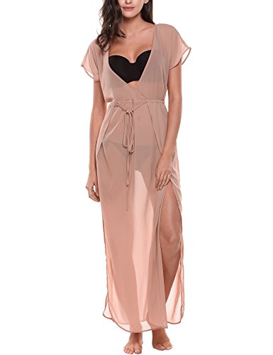 Design: V neck, Chiffon, See-through, Drawstring, Side slits, Tie waist.