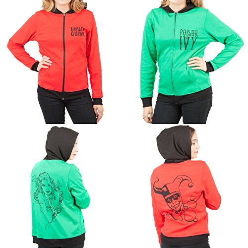Officially Licensed DC Comics Product One side is red and features Harley Quinn One side is green and features Poison Ivy Made of 60% Cotton and 40% Polyester Women's Size Small. Brand : DC EAN : 0887439922680