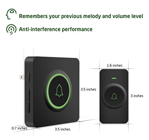 400 M/1,312 FT ULTRA LONG WIRELESS RANGE: 1 plug-in receiver included; will not interfere with other equipment in your home or those of your neighbors; ensures you will never miss a visitor, even if you are a few rooms away or on another floor