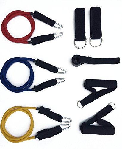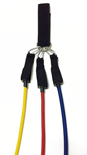 Includes 2 ankle straps with strong D-ring, 2 soft-grip foam handles, 1 easy to secure door anchor, a nylon carrying bag and starter guide.