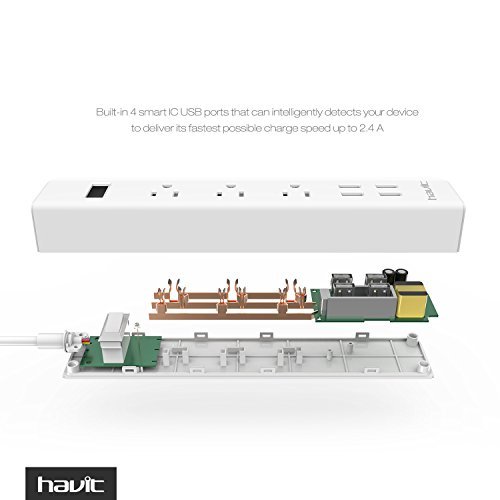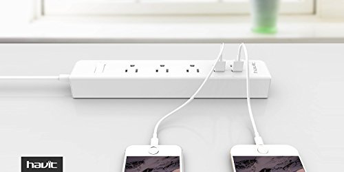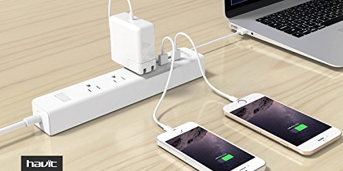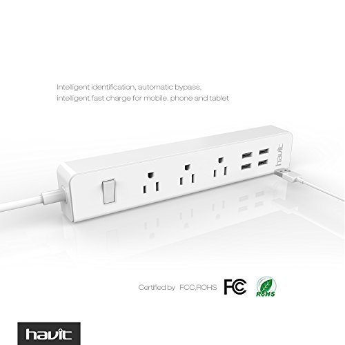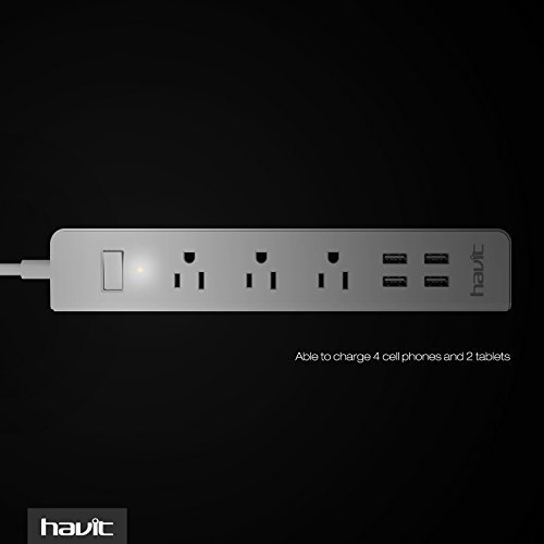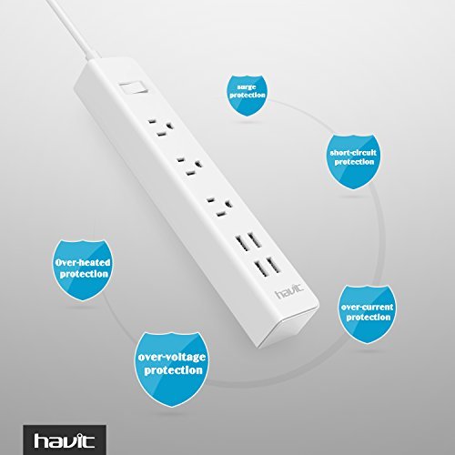 ★HAVIT Advantage - 3 AC outlets smart power strip with a 5-foot power cord and 4 USB charger ports which offers a convenient method of power distribution in workbench, floor mount applications.Much More Convenient During The Travel, Home And Office Use.(Input Voltage:AC 110V-250V)