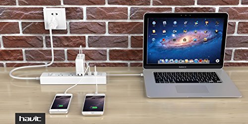 ★ Considerate Design - HAVIT USB power strip features ON and OFF power switch, visible but not-too-bright LED light, good spaced power plugs to handle block power adapters, 5ft cord allows all your electronic devices plugged without restrictions.