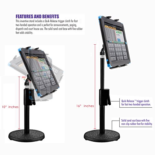 ChargerCity 360° Rotate Tablet Holder Podium Stand Mount w/Quick Release Telescopic Eye Level Height Adjust for Apple iPad Pro Air Mini Samsung Galaxy Tab Google Microsoft Surface Book 7-12" Tablets