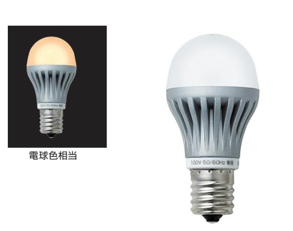 | 仕様 | 口金:E17 定格消費電力:5.0W 定格入力電流:0.088A 設計寿命:約40000時間 全光束:440lm エネルギー消費効率:88.0lm/W 光色:電球色相当 交流電源:100V 50/60Hz共用 屋内用 |