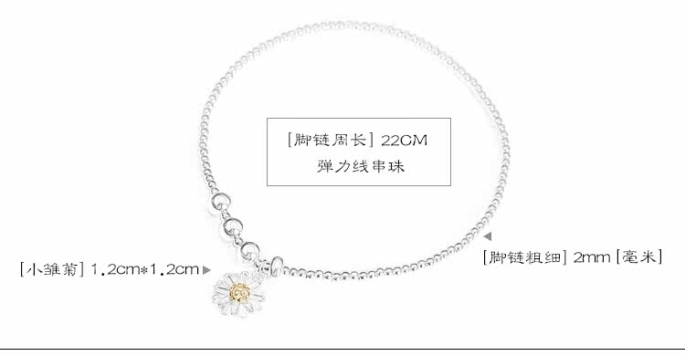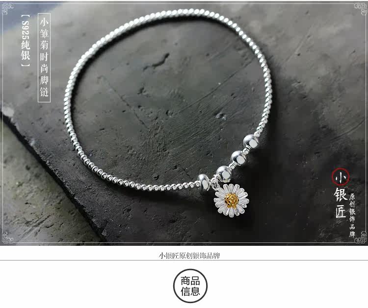 原创 手工S925纯银脚链 清新小花圆珠 女款时尚银饰品