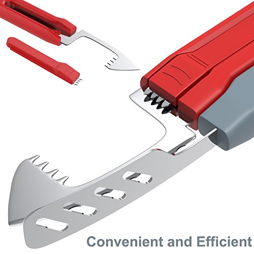 Spoon & blade are designed to be elevated to avoid mess on the counter-top. This avocado slicer has a firm handle that provides a nice grip regardless of how you hold it. It is also designed to offer the most comfort and efficiency when slicing your avocado.