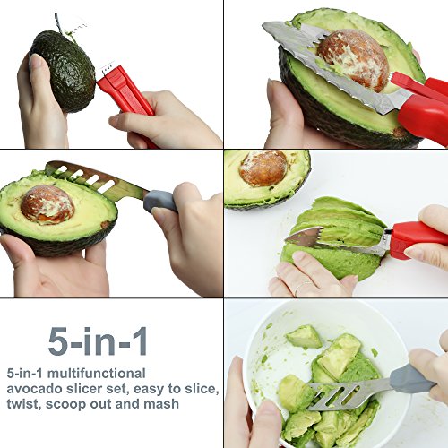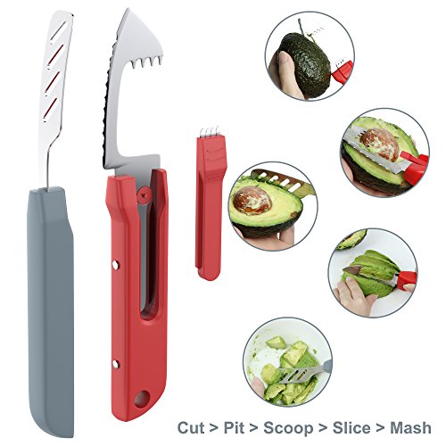 5-in-1 tool slicers, cuts, pits, scoops and mashes avocados effectively. It¡¯s a good kitchen tool and helper. It can be used for 3 different functions: slicing, cutting, or pitting your avocados fast and effectively.