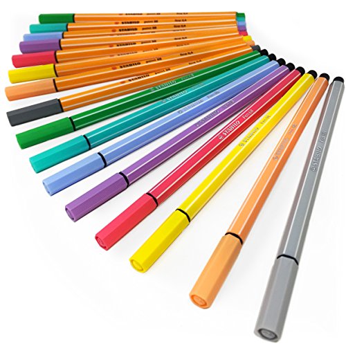 -. Binding : Office Product -. Brand : Stabilo -. Feature : Point 88 Fineliners + Pen 68 Felt Tip Pens - 16 Assorted Pastel Colours - Stabilo / This set features Stabilo's Point 88 fineliner which writes a fine 0.4mm line perfect for writing, drawing and sketching. / It also features Stabilo's Pen 68 felt tip pen which writes a 1mm line for even ink application. / Both pens can be left without the cap for up to 24 hours without drying out, allowing uninterrupted creativity. / These pens are suitable for school, college, office professionals or ambitious amateur artists due to the vibrant colour pay off. -. Label : Stabilo -. Manufacturer : Stabilo -. MPN : 88/8-01 - 68/8-01 -. PackageQuantity : 16 -. PartNumber : 88/8-01 - 68/8-01 -. ProductGroup : Office Product -. ProductTypeName : WRITING_INSTRUMENT -. Publisher : Stabilo -. Studio : Stabilo -. Title : Stabilo Point 88 Fineliners + Pen 68 Felt Tip Pens – Set of 16 Assorted Pastel Colours