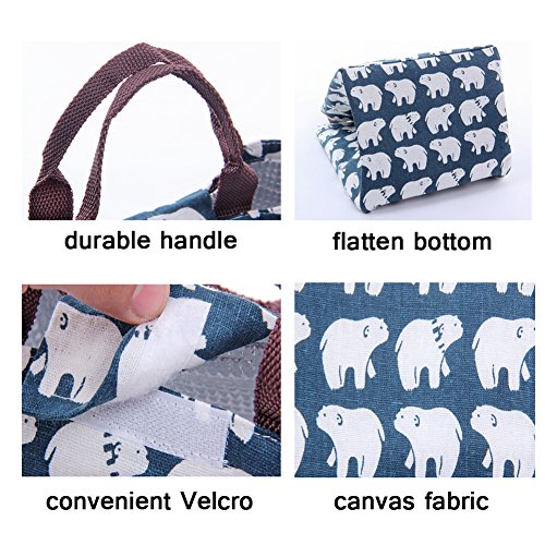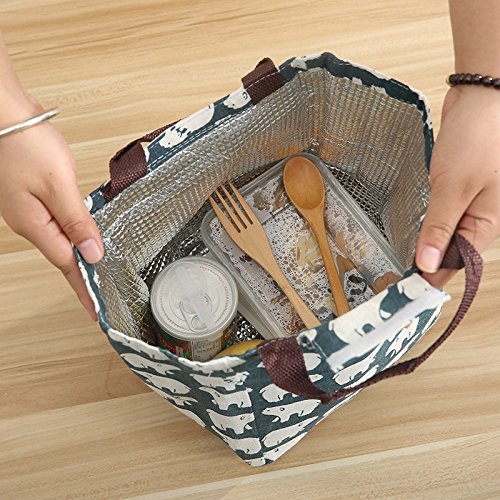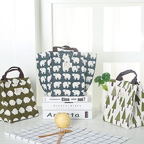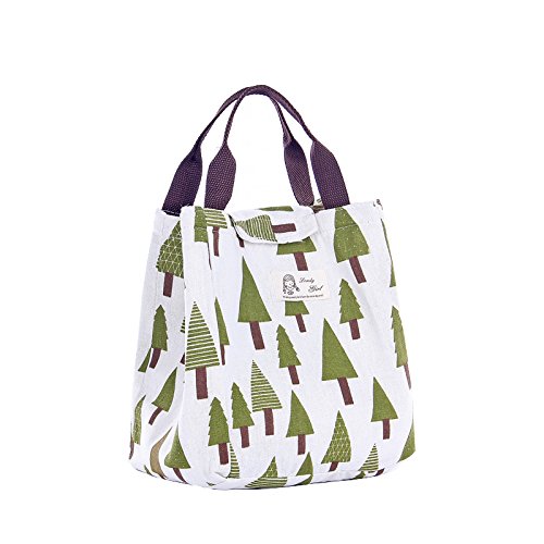 YAHUIPEIUS Canvas Tote Bag Lunch Bag for Adult Women Kids Cartoon Pattern Bento Cooler Bag (Tree)
