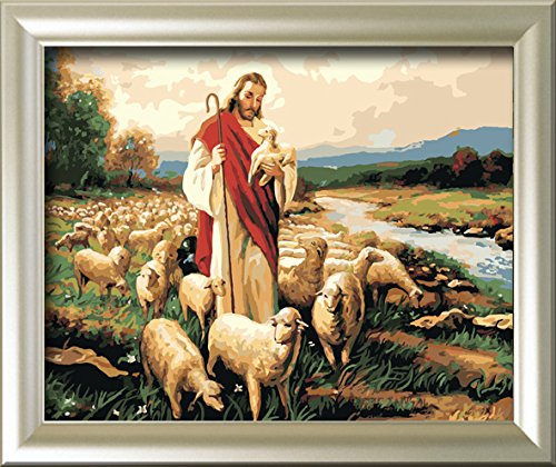 LITTLEBIRD4 NEW ACRYLIC PAINT BY NUMBER KIT JESUS GRAZING 16X20 INCHES WITHOUT FRAME.