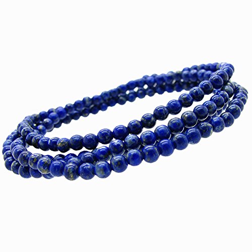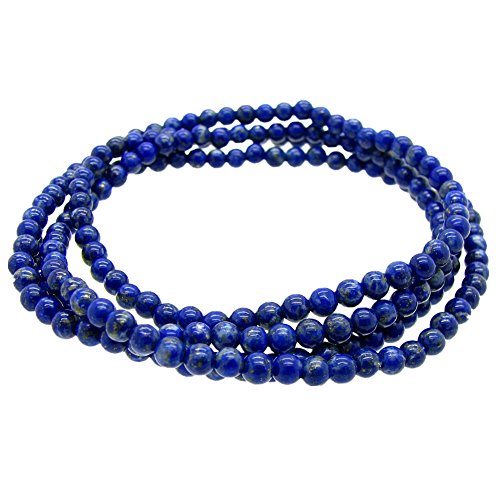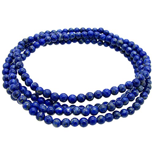 -. Title : Stunning 4mm Round Stackable Simulated-Lapis Bead Stretchy Bracelet / Necklace 28"