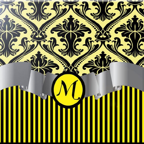 Rikki Knight RK-12intilec-2148 12" X 12" Letter "M" Yellow Damask Stripes Monogrammed Design Ceramic Art Tile