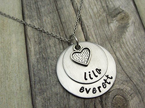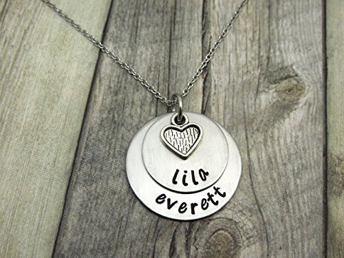 -. Title : Two name mothers necklace with flat heart charm Personalized mothers necklace, mothers day gift
