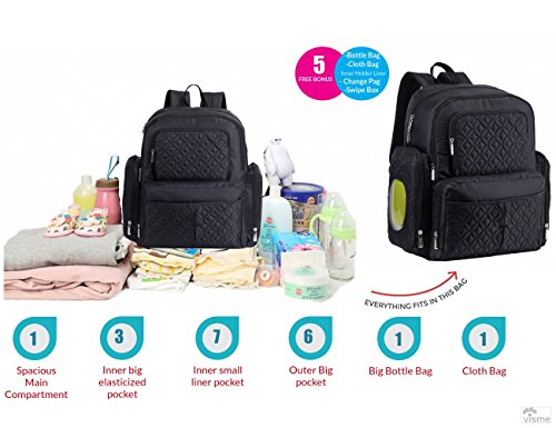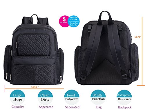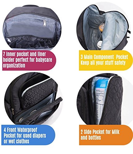 When we are looking for a diaper,you should have a check list, Handsfree is the way to be - this diaper backpack reliably holds all your essential items for baby care (like diapers, food, and extra clothing) - all while freeing up both of your hands. You can even strap it to your stroller when travel outside. This backpack set has everything you need: --1X 10?pockets for total organization including Elasticized interior storage pockets; side bottle pockets; thermal insulation bottle pockets; cell phone pocket; protected zipper pockets; -1 X Cooler/Warmer Bottle Pack -1 X Refill Wipe Box -1 X Cloth organizer -1 X Changing Pad 1X7 Inner Liner