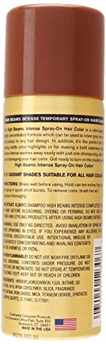 ReleaseDate : 2014-02-12 Studio : high beams Publisher : high beams Binding : Health and Beauty Product Description Our new and improved. High beams intense temporary spray-on hair color is a salon-quality, highly concentrated formula which can be used to cover grey roots or 0