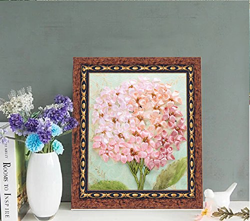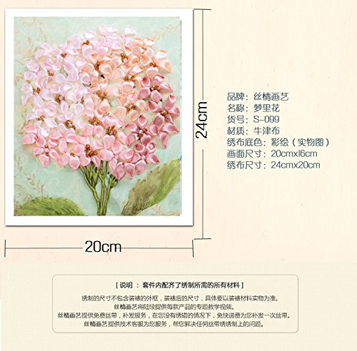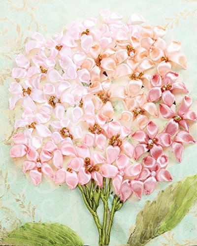 Ribbon embroidery Kit Handmade flower design for beginner DIY Wall Decor pink (No frame)