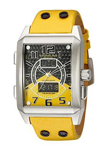 -. Binding : Watch -. Brand : Stuhrling Original -. Department : mens -. EAN : 0847988005036 -. Feature : Satin finished stainless steel case with Analog-Digital movement and protective Krysterna crystal / Yellow and grey dial with world time, add and split function chronograph and 60 minute count-down timer / Alarm function and perpetual calendar with grey hands and markers / Yellow tapered genuine leather strap with steel studs for accents / Water resistant to 330 feet (100 M): suitable for snorkeling, as well as swimming, but not diving -. IsAdultProduct : 0 -. Label : Stuhrling Original -. Manufacturer : Stuhrling Original -. Model : 255B.3315G65 -. MPN : 255B.3315G65 -. PackageQuantity : 1 -. PartNumber : 255B.3315G65 -. ProductGroup : Watch -. ProductTypeName : WATCH -. Publisher : Stuhrling Original -. ReleaseDate : 2011-09-05 -. Studio : Stuhrling Original -. Title : Stuhrling Original Men's 255B.3315G65 Leisure Mad man Digital Quartz Chronograph Perpetual Calendar Yellow Watch -. UPC : 847988005036