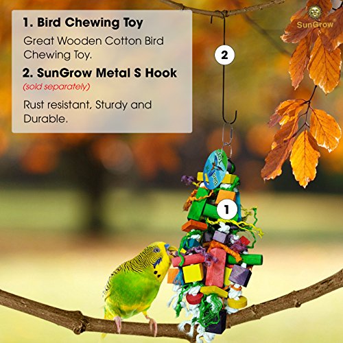 SAFE TO CHEW --- It is important for our feathered pet to have something to chew on. In the jungle, they engage in chiseling holes and tearing up branches. This is something innate for them. Bird Chewing Toy by SunGrow is made from wooden cotton rope. Its crunch potential is ideal for small parrots and medium sized, conure-sized bird.