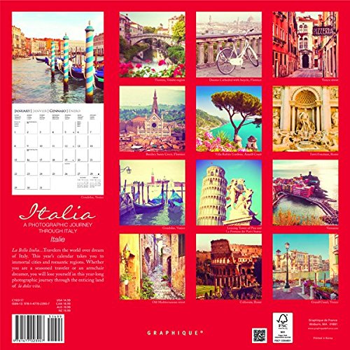 -. Binding : Calendar -. Brand : Graphique -. EAN : 9781477023907 -. Edition : 16m Wal -. Feature : Size: 12" x 12" format / Plan ahead with a 4-month preview page for 2018 / Each page includes before & after preview months / Includes public & culturally significant holidays / 4 languages: English, French, Spanish & Italian -. ISBN : 1477023909 -. Label : Graphique de France -. Manufacturer : Graphique de France -. Model : CY65117 -. MPN : CY65117 -. NumberOfItems : 1 -. PackageQuantity : 1 -. PartNumber : CY65117 -. ProductGroup : Office Product -. ProductTypeName : OFFICE_PRODUCTS -. PublicationDate : 2016-07-15 -. Publisher : Graphique de France -. Studio : Graphique de France -. Title : Graphique 2017 Italia 12" x 12", Wall Calendar (CY65117)