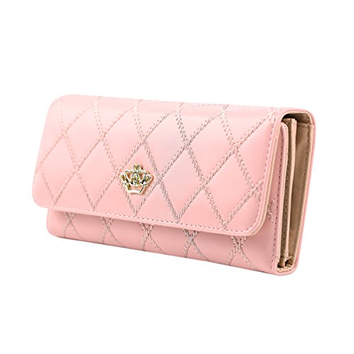 Jastore® Elegant Lady Women Clutch Crown Wallet Long Purse Leather Wallet (Pink)