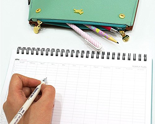 -. Feature : Undated calendar planner, set a date by yourself and start over anytime / Has PP cover for durability, made of high quality paper / Has an easel-style, sturdy backer to stand uP.R.Ight on the desktop and wire bound across the top to easily flip the pages from month to month / A pack of 1 monthly planner; 12 months of planning: 9.25"X2.76"X7.09"(folded size: 9.25"X8.58") / One month per page features daily squares with enough space to jot down notes and free note space on the back side of each sheet