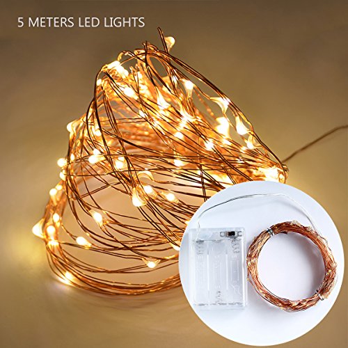 Battery Powered LED Copper Wire Lights 5M 16ft/50 Leds Waterproof Decorative Flexible Bendable Rope Lights for Bedroom Christmas Patio,Garden,Gate,Yard,Parties,Wedding-Warm White(Battery Not Included)