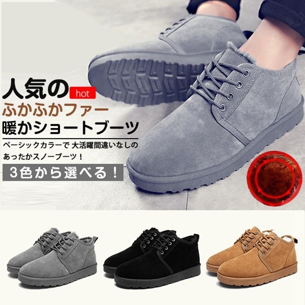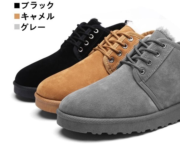 【サイズ】39 24.5CM 40 25.0CM 41 25.5CM 42 26.0CM 43 26.5CM44 27.0CM【カラー】ブラック、キャメル、グレー【素 材】スエード 【POINT 】◆ベーシックカラーで大活躍間違いなしのあったかスノーブーツ!◆3色から選べる!◆人気のふかふかファー暖かショートブーツ【ご注意】※ワンサイズ上の商品をお勧めしております。※こちらの商品はシューズ単品の販売です。※モニターによって実物と多少色具合が異なって見える場合もございます。※保管する時は、汚れを落として陰干ししてから、通気性の良い所へおしまい下さい。※火のそばに置くと軟化し変形することがあります。※毎日、ローテーションすることでシューズの寿命もアップします。