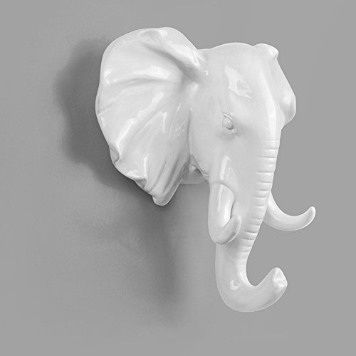 TraPal Elephant Head Single Decorative Coat Hook Wall Mounted Rustic Coat Rack Easy to Install Resin Animal Shape Clothes/Garment/Jacket Hanger (Elephant-White)