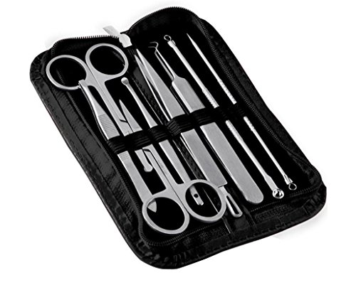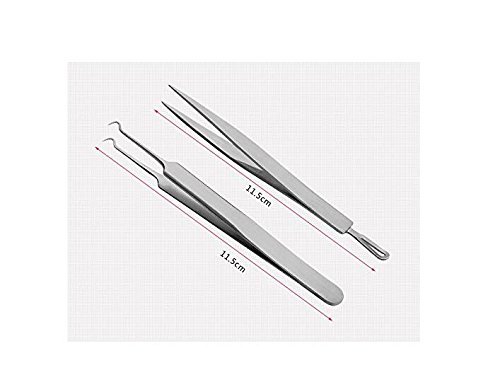 Set of 8 Professional Remove Blackheads Whiteheads Bend Straight Acne Tweezers Needle Eyebrow Clip Earpick Pimple Comedone Blemish Extractor Cleaner...