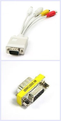 -. Feature : Connectivity: D-Sub high density 15 pin to S-Video mini din 4 pin female and RCA jack This VGA to S-Video + 3 RCA Adapter connections your PC / Laptop to LCD projector, HDTV, or any other display devices / Note: Please make sure the Video Card of your system supports TV (RCA / S-Video) output through VGA Port. If not , a signal converter box is needed to pair with this adapter. Please check your Video Card manual or manufacturer to ensure the VGA Port has TV-Out function.