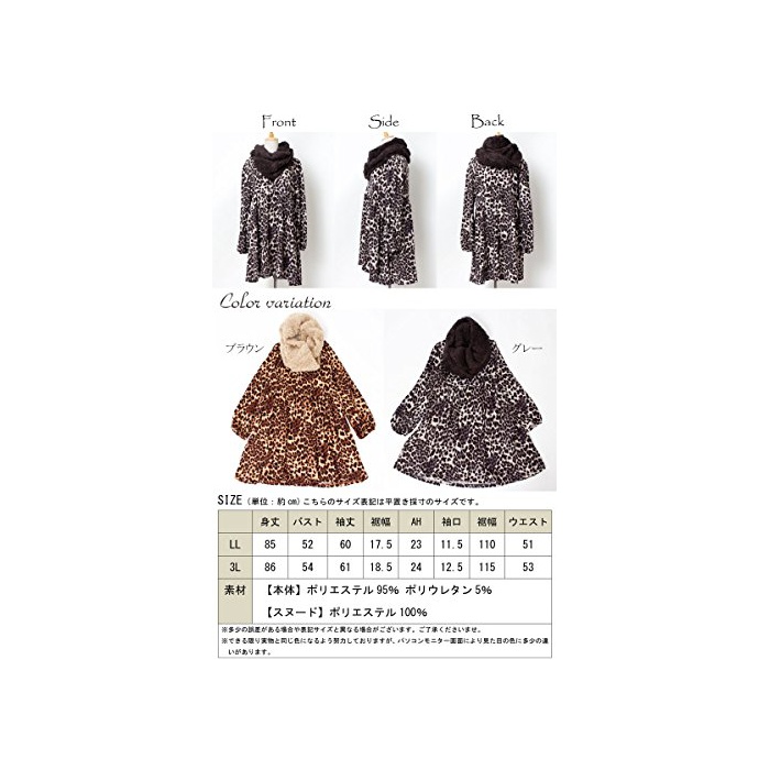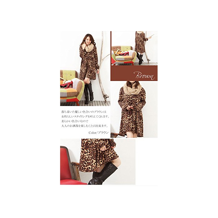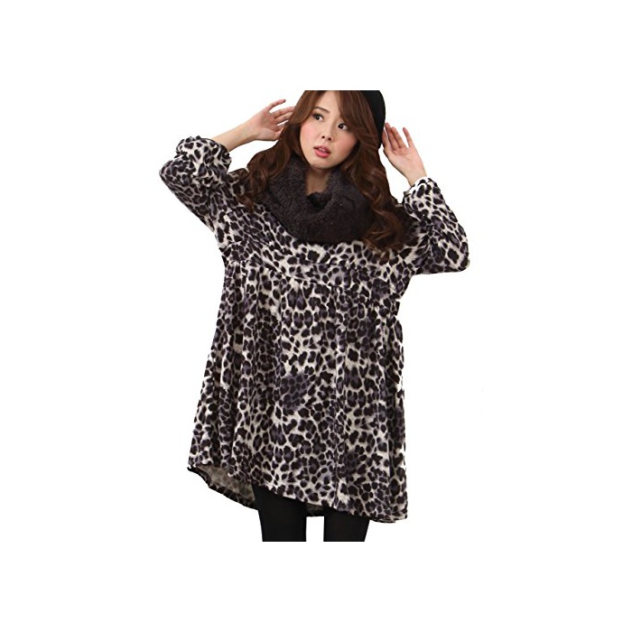GoldJapan (Goldjapan)골드 재팬 큰 사이즈 큰 사이즈 레이디스 2점 세트 스누도부착 레오 파 드무늬 변환 튜닉 원피스 벌룬(balloon) 원피스 긴 소매 불리 체형 하마