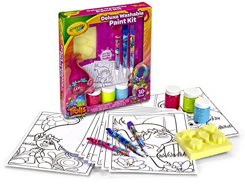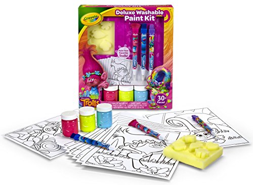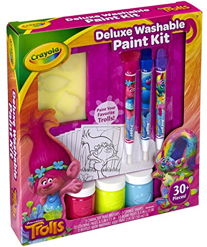 Create and paint with your favorite characters from Dreamworks' Trolls! This all-in-one paint kit allows children to apply Crayola Paint with brushes and sponges on line art inspired from the movie.Feature
