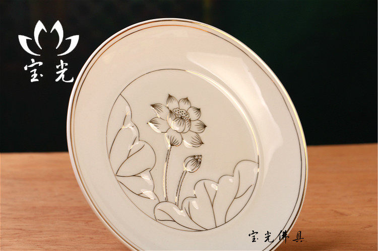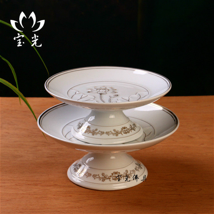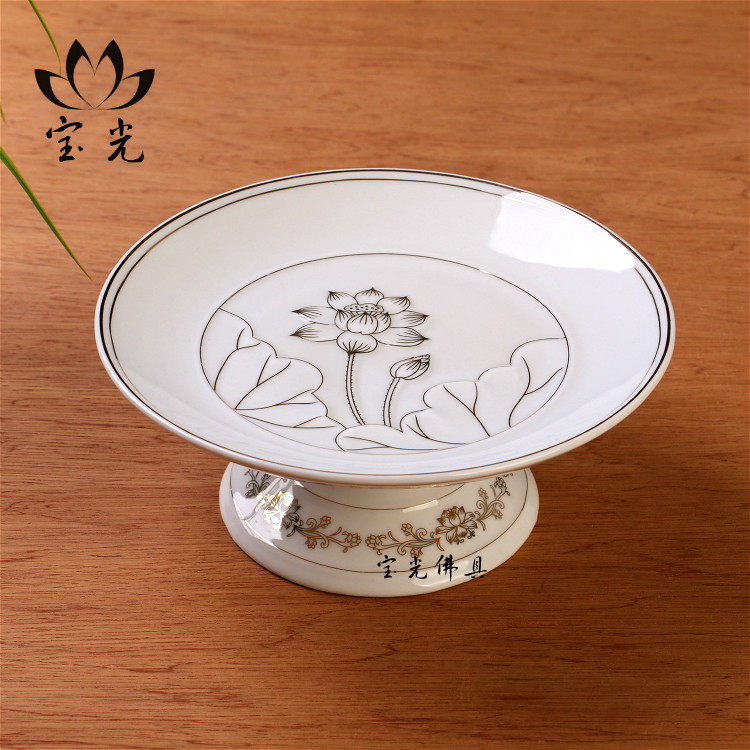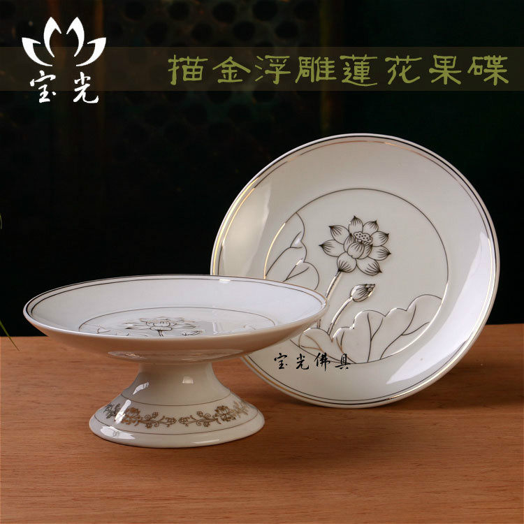 宝光佛具佛教用品陶瓷描金浮雕莲花果碟供佛果盘水果盘贡盘佛具