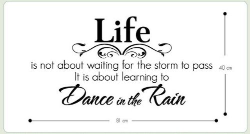 - Title : Life Is Not Waiting for the Storm to Pass It Is About Learning to Dance in the Rain Wall Decal Quote Sticker Living Room Decor Wide 81cm High 40cm Black Color