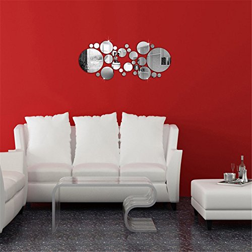 aooyaoo Solid circle wall stickers Circle Mirror DIY Living room/ bedroom/decoration 28pcs