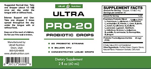 -. Title : Ultra Pro-20 Probiotic Drops - 20 Strains of Probiotics including Lactobacillus Acidophilus in Liquid Form
