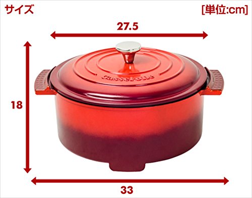 야마젠(YAMAZEN) 그릴과 800W 용량2.8L (직경23 깊이6.8cm) 「Casserolle(갸세로루)」 레드 YGC-800(R)