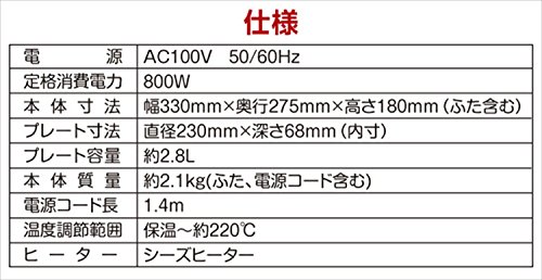 원본상품명: 山善(YAMAZEN) グリル鍋 800W 容量2.8L (直?23 深さ6.8cm) 「Casserolle(キャセロ?ル)」 レッド YGC-800(R)