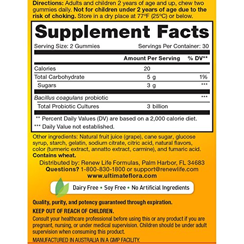 -. Title : Renew Life Probiotic Sour Gummies, Ultimate Flora, 3 Billion, 60 Gummies