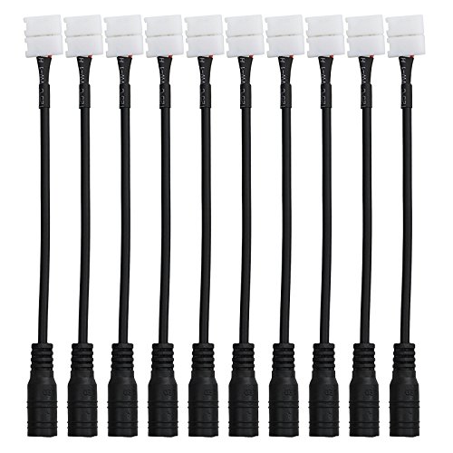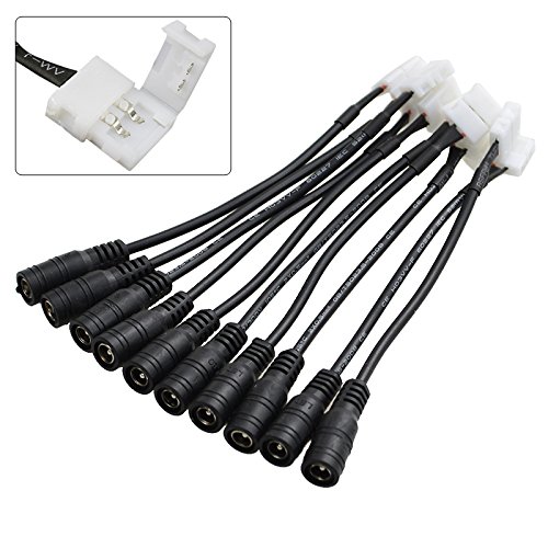 10PCS 5050 5630 LED Flexible Light Strip to Power Clip on Connector and DC Jack 5.5x2.1mm Cable 2 Pins 10mm Wide Strip to Strip Jumper Wire Solderless