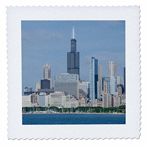 3dRose Illinois, Chicago, Lake Michigan View of The Chicago City Skyline. - Quilt Square, 25 by 25-Inch (qs_207810_10)